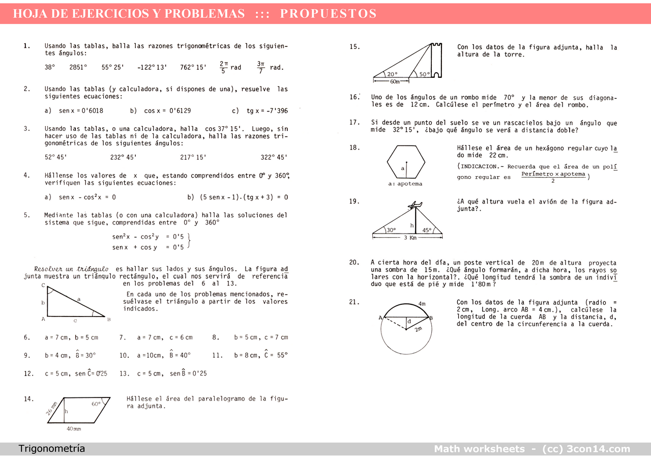 B · Hoja 003 - Ejer. y prob., propuestos, de trigonometría Publicado en 02.- Resolución de triángulos Hoja 003 - Ejer. y prob., propuestos, de trigonometría y sus aplicaciones